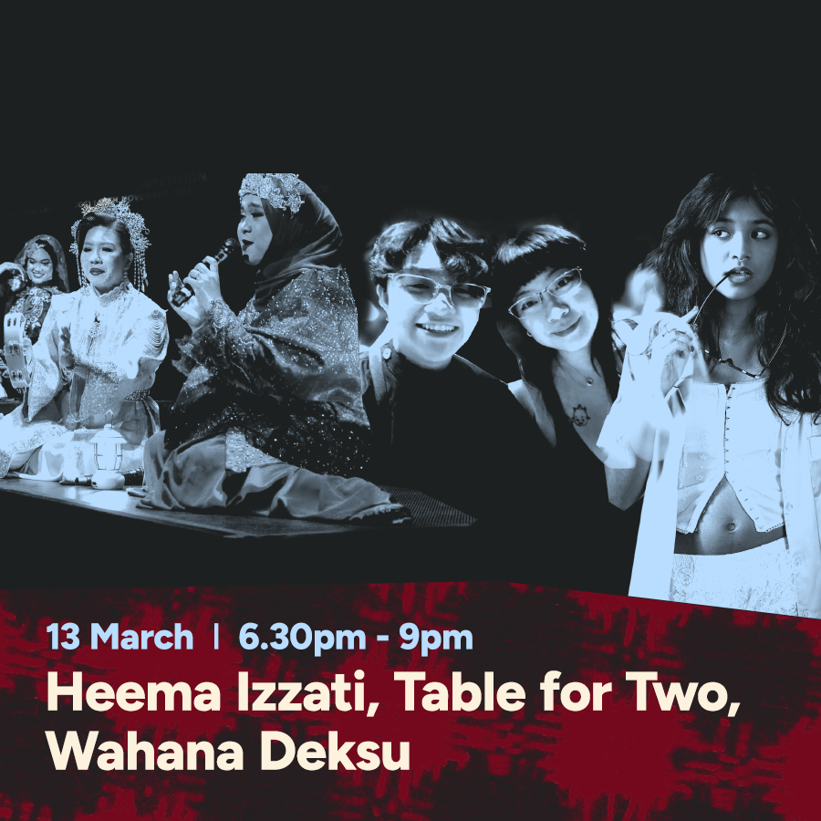 We bring together young artist Heema Izzati, emerging talent Table for Two and a full women's Dikir Barat ensemble in a live music showcase at Swee Lee Clarke Quay.